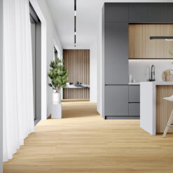 Germany THE FLOOR imported 100% waterproof stone–crystal flooring. The core board uses “E‑Marble” mineral composition as its main material, and the surface is protected by a new‑generation natural anti‑scratch layer, offering comfort, durability, and health safety.